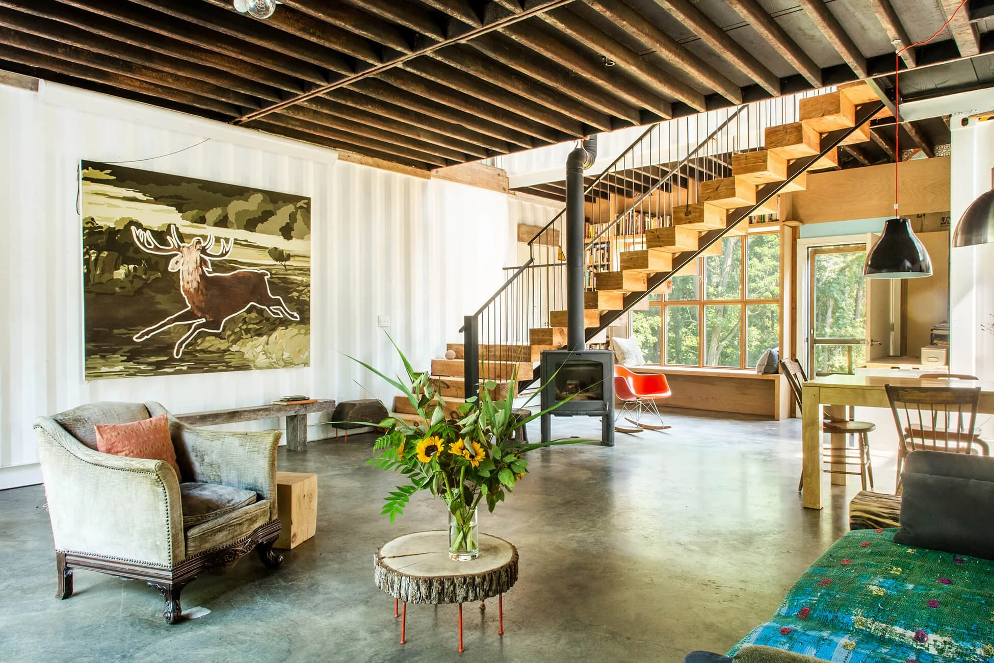 A creative's paradise: One block from Warren Street this unusual property with a sweet cottage and lovely front garden. It is airy and light with 3 bedrooms, bath, living room, side deck, kitchen, 3 season porch, charming one bedroom apartment upstairs, a lovely terrace and a spectacular warehouse studio backing onto the state forest.